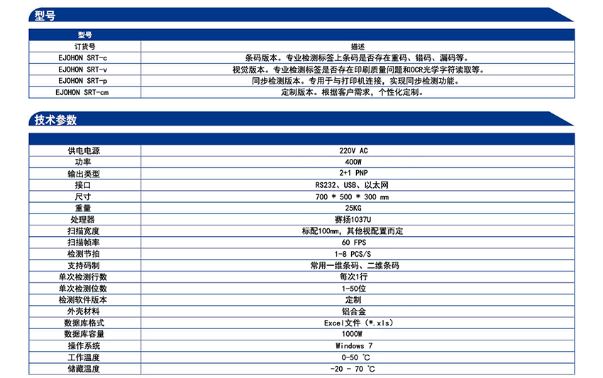 EJOHON SRT-v 視覺防重(視覺版本,專業檢測標簽是否存在印刷質量問題和OCR光學字符讀取等)