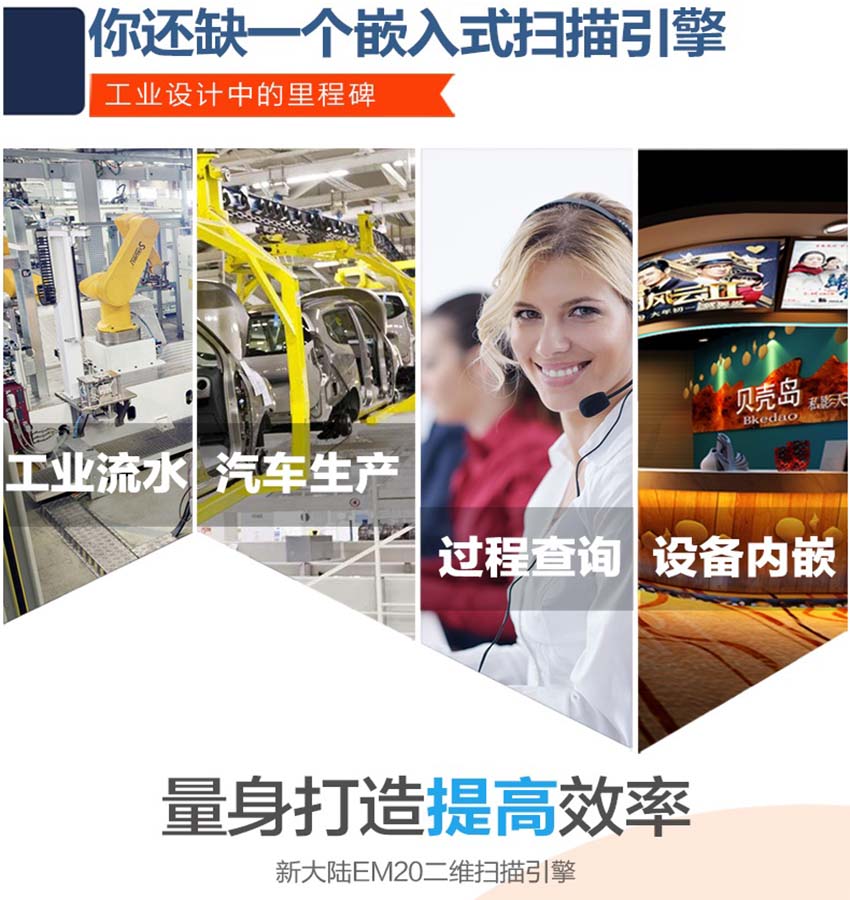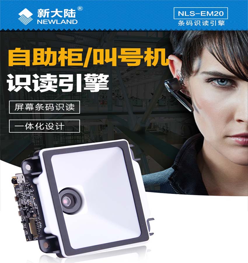 新大陸NLS-EM20可識讀各類主流一維條碼及標準二維條碼( PDF417、 QR Code M1/M2/Micro 和 Data Matrix 的各種版本)。新大陸NLS-EM20可以輕松讀取紙張、塑料卡、 LCD 等各種印制介質和顯示介質上的條碼,性能強大。新大陸NLS-EM20完全一體化的設計,僅需非常小的安裝空間,而且重量極輕,非常便于嵌入到各種產品應用中。