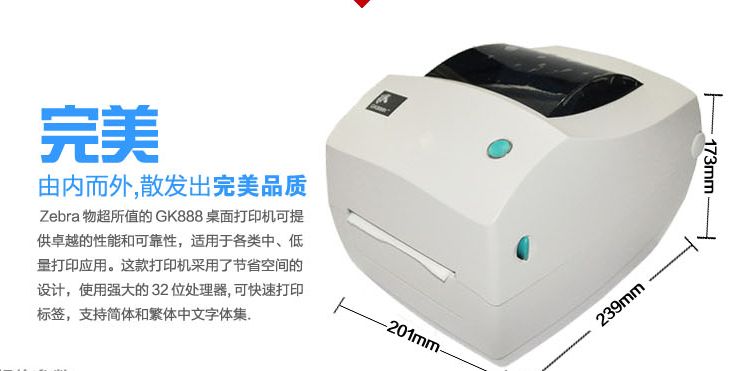 斑馬(Zebra)GK888打印機作為一款桌面級打印機,融合了ZEBRA先進技術,秉承了斑馬在打印領域的多年研發經驗,使用戶在操作上更加靈活、方便簡單,非常適合產品標識,資產管理,文件追蹤,物料管理,進出貨物管理及庫存盤點等條碼標簽打印。并且價格非常實惠。