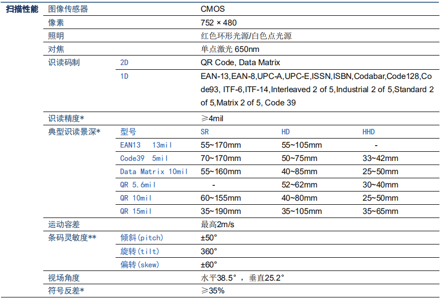 多種型號滿足多場景 提供 HHD、HD、SR 三種距離版本,條碼掃描器可滿足不同的應(yīng)用需求。