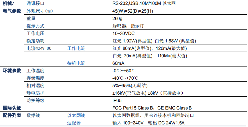豐富的通訊接口 固定式條碼掃描器集成了以太網(wǎng)/RS232/USB 接口,并支持 IO 端口輸入輸出。