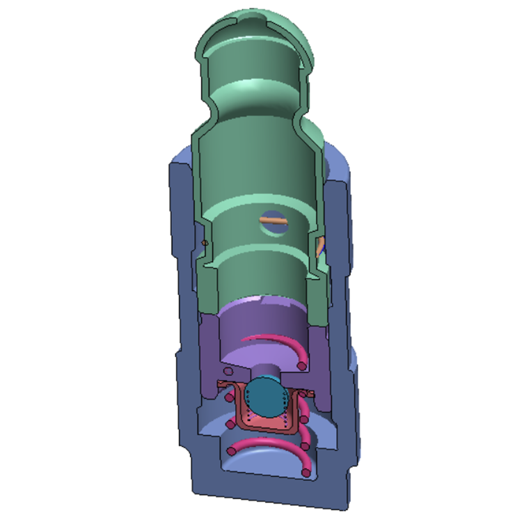 1、送料裝置完成球座、彈簧、柱塞、鋼珠等零件的上料